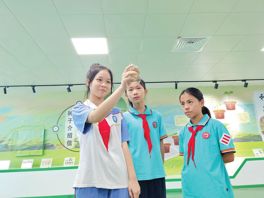 青少年在縣農(nóng)業(yè)科技示范場參觀。