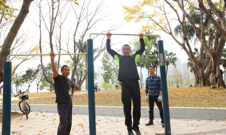 除了江北,一江之隔的橋東也同樣“風(fēng)景甚好”。每天下午,市民劉務(wù)奇都會約上自己的創(chuàng)業(yè)伙伴,到東江沙公園練習(xí)單杠。“我們從外地來惠州創(chuàng)業(yè),搞好事業(yè)的同時(shí),也不忘要強(qiáng)健體魄。”劉務(wù)奇說,東江沙公園是廣大市民“家門口的福利”,如此完備齊全的健身器材,讓他倍感貼心。