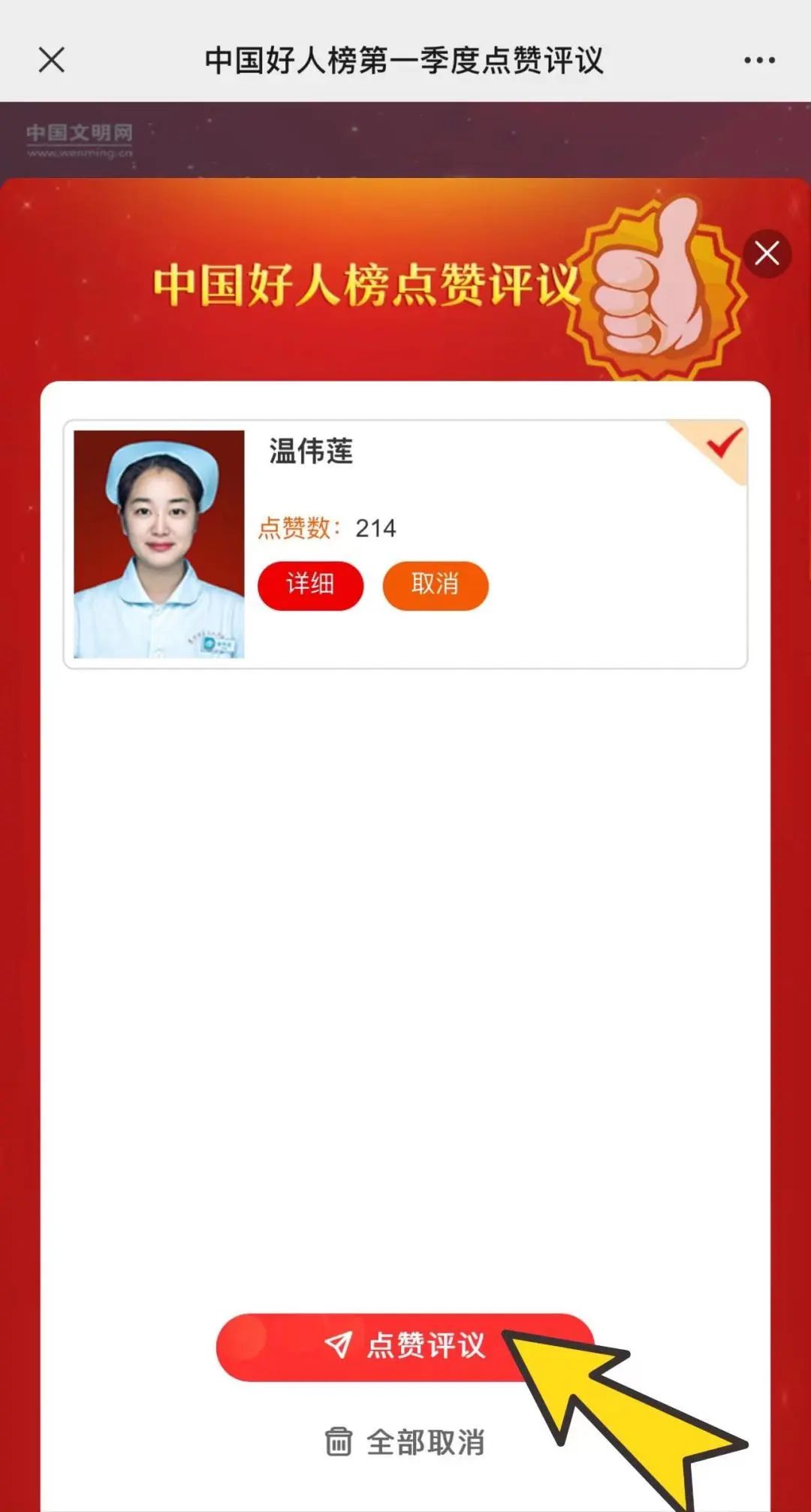 惠城區(qū)共有1名候選人參與此次點贊評議活動,快動動手指為我區(qū)溫偉蓮點贊吧!