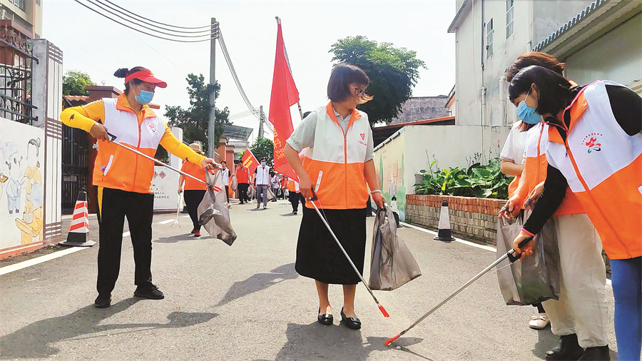 市民在觀背村進(jìn)行公益撿跑。惠州日?qǐng)?bào)記者盧泓宇 攝