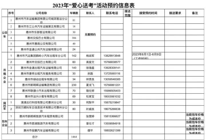 一年一度的高考即將來臨,為了讓廣大考生能夠安全、快捷、準(zhǔn)時抵達(dá)考場,以良好的心理素質(zhì)和沉著冷靜的狀態(tài)應(yīng)對考試!惠州市交通運(yùn)輸局惠城區(qū)分局同惠城區(qū)各交通運(yùn)輸企業(yè)共同舉辦2023年“愛心送考”公益活動,全區(qū)近1500輛公交車、出租車(含網(wǎng)約車)將全力為考生保駕護(hù)航!