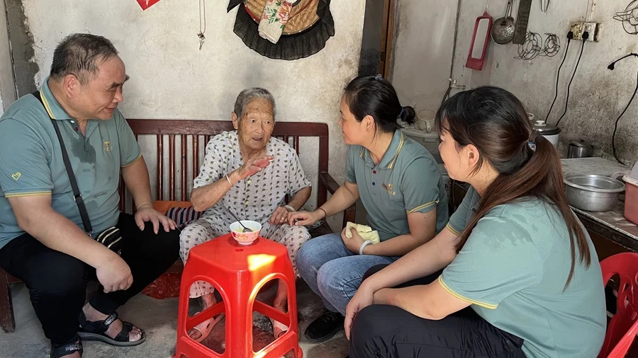 仲愷雨花公益互助會(huì)志愿者陪伴長(zhǎng)者聊天,給予關(guān)愛(ài)。