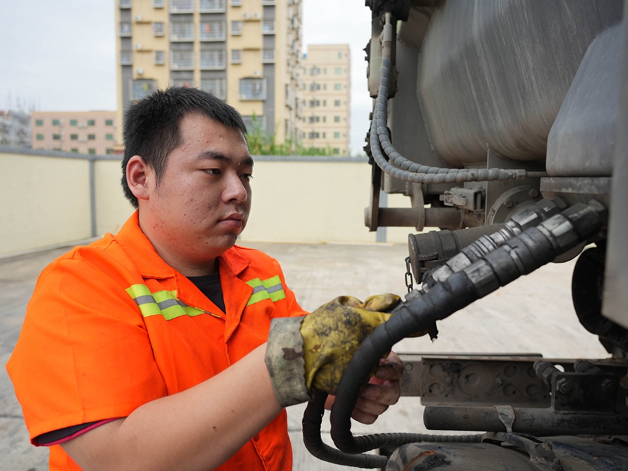 曹石養(yǎng)是環(huán)衛(wèi)修理工,他日常工作繁重且瑣碎,負(fù)責(zé)對(duì)各種環(huán)衛(wèi)設(shè)施和車輛進(jìn)行維護(hù)和修理,保障日常垃圾清運(yùn)工作正常開展。