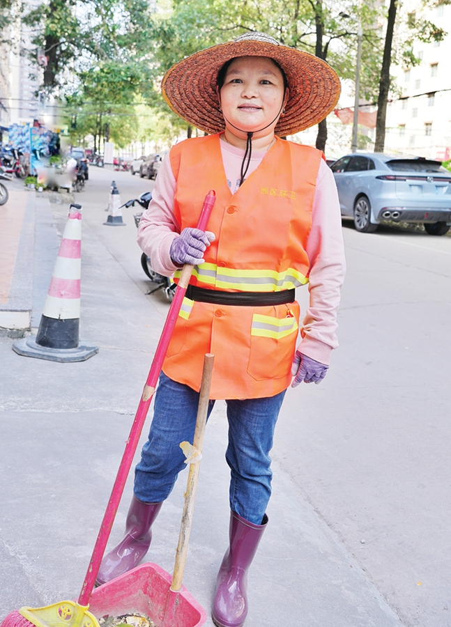 胡水英打掃街道。