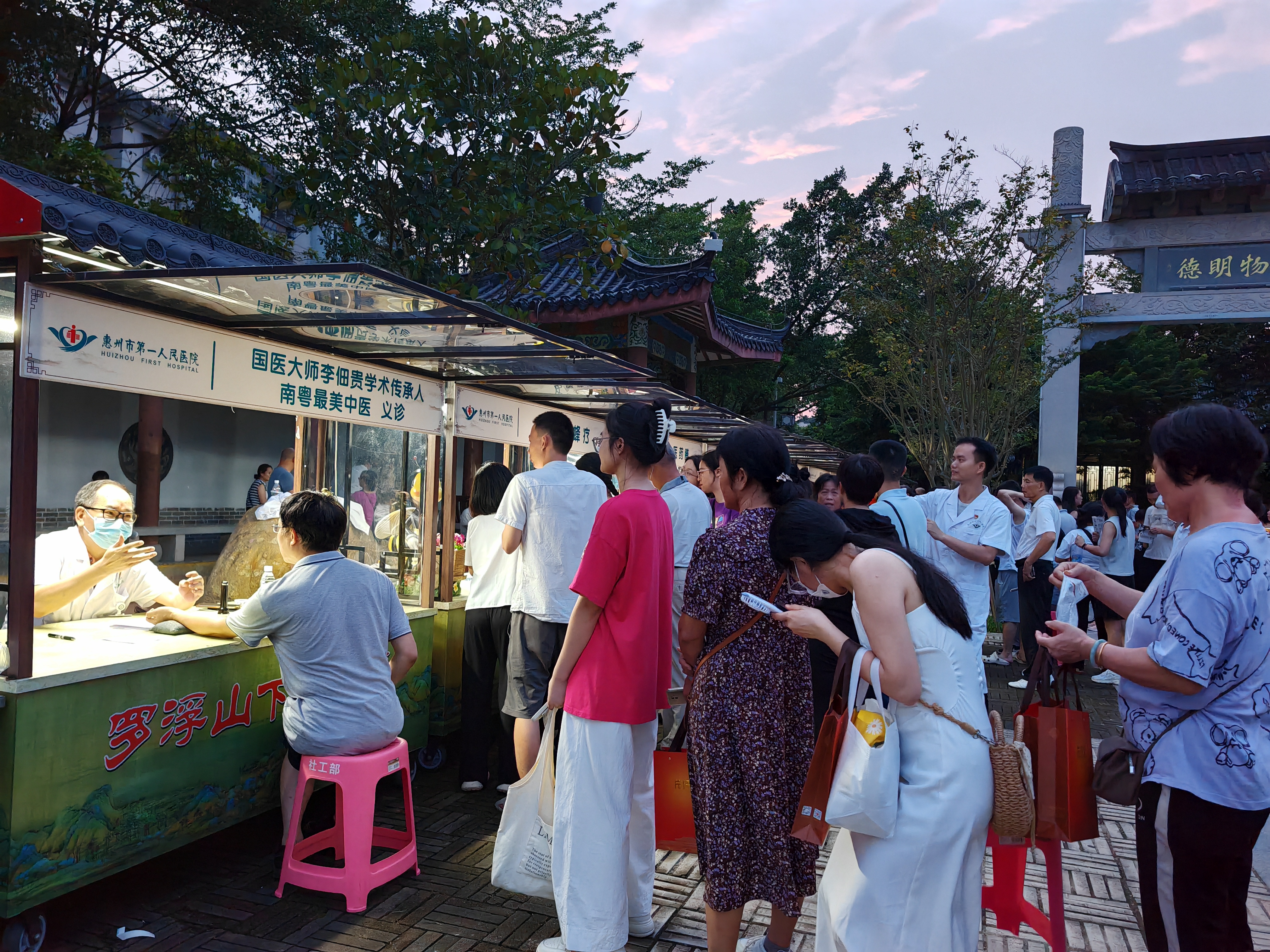 夕陽西沉,微風(fēng)輕拂,伴隨著夜幕降臨,惠州西湖豐湖書院廣場熱鬧非凡,一群身穿白大褂的“攤主”又在“擺攤”給群眾送健康。