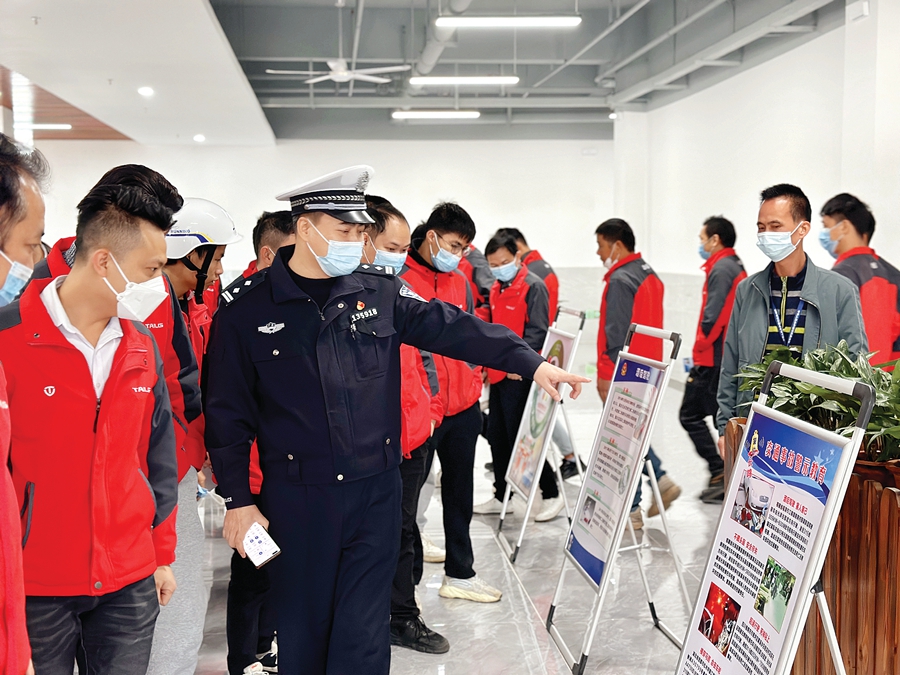 “全國交通安全日”我市公安民警進企業(yè)開展宣傳。惠州日報記者朱麗婷 攝