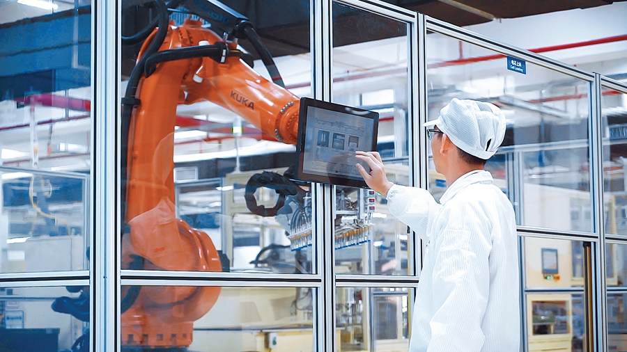 億緯鋰能數(shù)字化生產(chǎn)線。惠州日?qǐng)?bào)記者林麗娟 魏怡蘭 攝