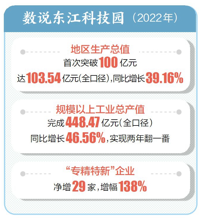 2022年,東江科技園黨委、管委會圍繞2025年全面建成高質量發(fā)展專業(yè)化千億園區(qū)奮斗目標,堅持發(fā)展實體經濟不動搖,堅持制造業(yè)當家,集中資源要素大抓招商引資,狠抓項目建設,以時不我待的緊迫感加快做大做強經濟總量,園區(qū)經濟實現(xiàn)新突破,高質量發(fā)展邁出堅實步伐。