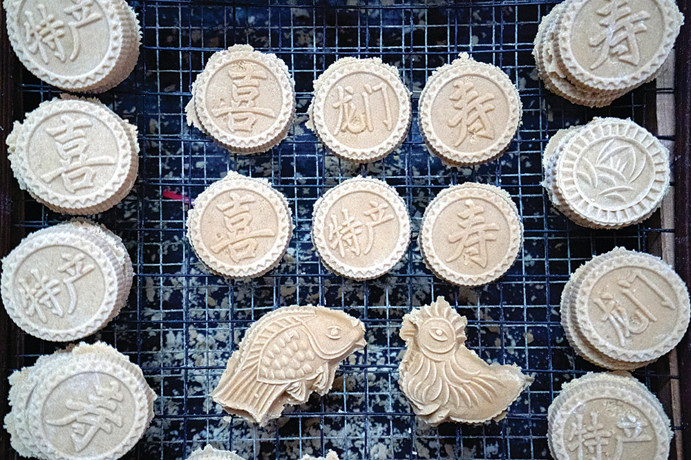 米餅上的吉利詞匯,寓意對親友的美好祝福。