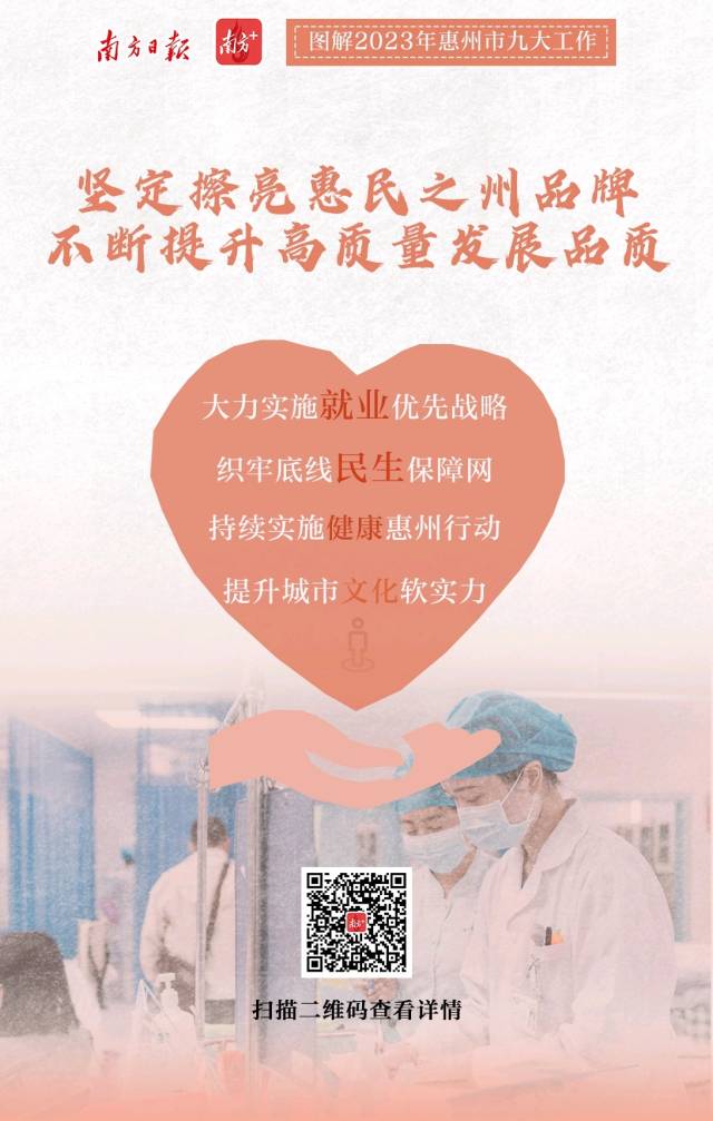 2月7日上午,惠州市第十三屆人民代表大會第三次會議開幕。會上,惠州市委副書記、市長溫金榮作市政府工作報告。惠州市政府工作報告提出,2023年重點(diǎn)聚焦九個方面重點(diǎn)工作,南方日報、南方+客戶端推出9張海報帶你速覽。