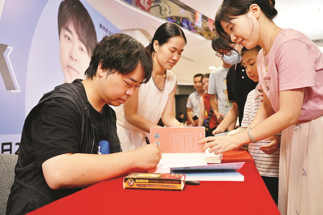 李尚龍現(xiàn)場簽名。惠州日報記者朱金贊 攝