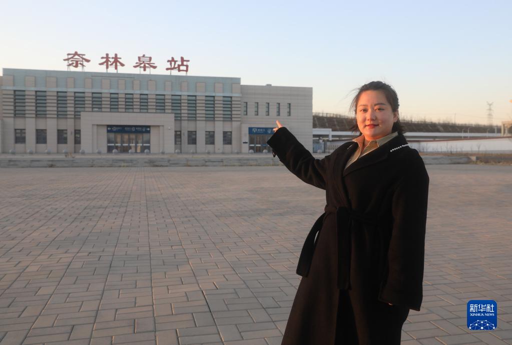 2月20日,王穎在遼寧省朝陽(yáng)市朝陽(yáng)縣的奈林皋高鐵站留影。