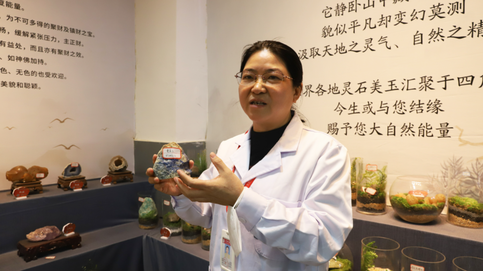 日前一個(gè)風(fēng)和日麗的午后,記者在四角樓珠寶創(chuàng)意園見到了剛從實(shí)驗(yàn)室出來(lái)的喻連香,身穿白大褂,個(gè)子不高,步子不急,氣場(chǎng)沉穩(wěn)。在四角樓珠寶創(chuàng)意園一樓展廳,打開話題的不是展廳里流光溢彩的寶石,而是展廳出口處的環(huán)保中心模型、擺在墻角的樣品玻璃瓶和固廢做成的廚房面板。