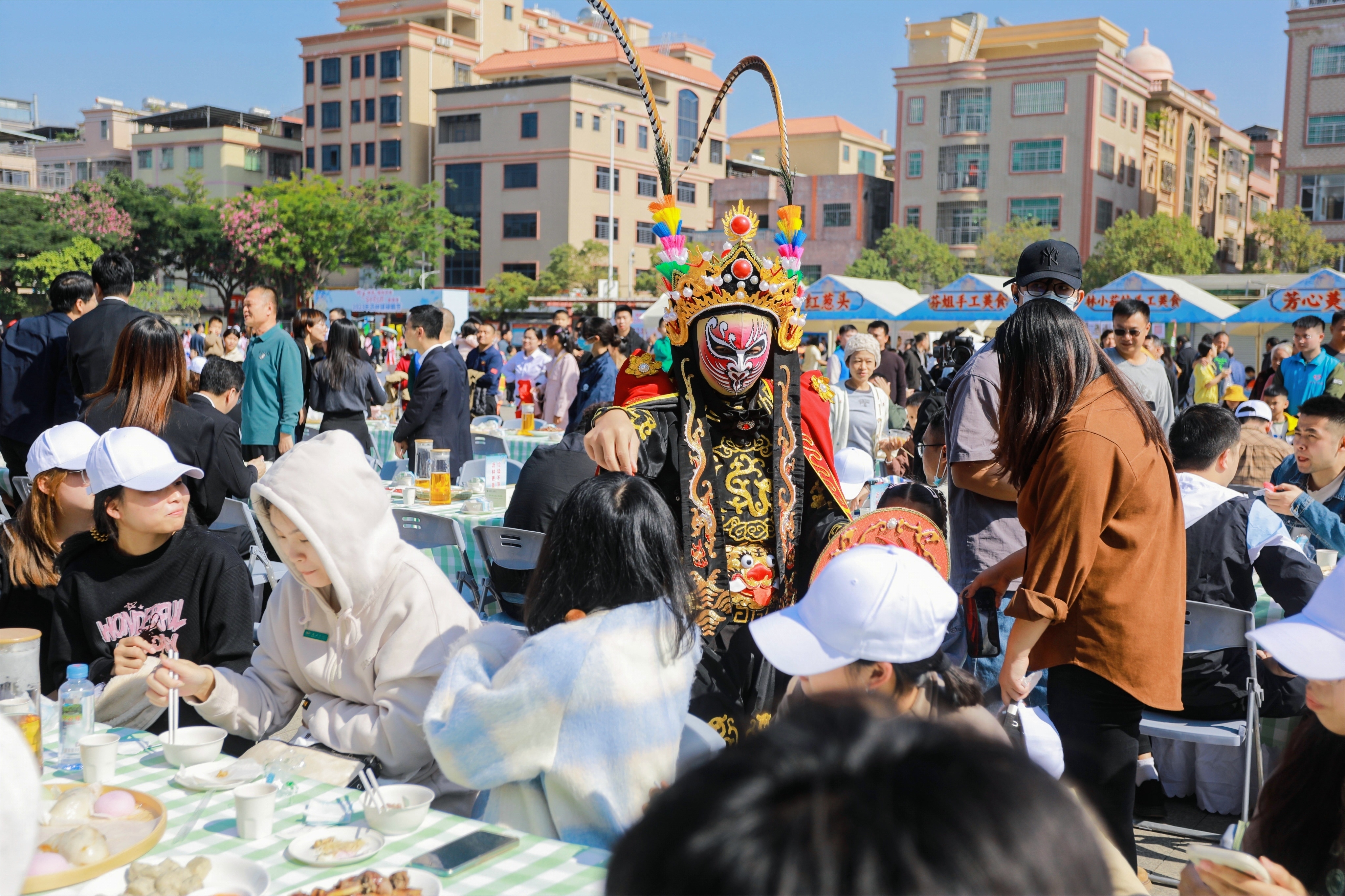 除了碌鵝美食交流賽,當天的另一特色就是長桌碌鵝宴,大家共享“舌尖上的美食”,共品瀝林碌鵝味覺盛宴。此外,活動現(xiàn)場還設(shè)置了瀝林本土特色農(nóng)產(chǎn)品展示區(qū)、特色美食區(qū)以及套鵝游戲區(qū),游客沉浸式體驗瀝林美食文化。“碌鵝很美味,套鵝游戲很好玩,還有很多好吃的,非常棒。”一邊品嘗美食一邊玩游戲的游客對此次碌鵝節(jié)豎起了大拇指。