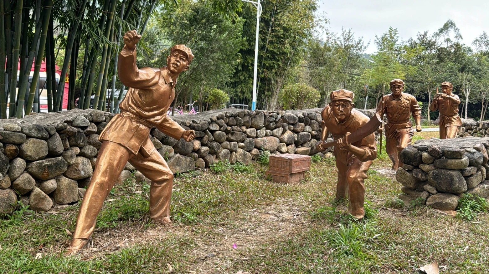 低冚伏擊戰(zhàn)戰(zhàn)士戰(zhàn)斗雕塑、低冚伏擊戰(zhàn)遺址紀(jì)念墻、軍旗廣場、勝利之門、聚和堂宗祠、婦女夜校遺址、大型革命主題浮雕……隨著一個(gè)個(gè)紅色遺址的開發(fā)利用,這個(gè)昔日的小山村一下子熱鬧起來,除了接待各級黨組織參觀學(xué)習(xí),還有不少游客慕名前來游玩,成為熱門打卡地。