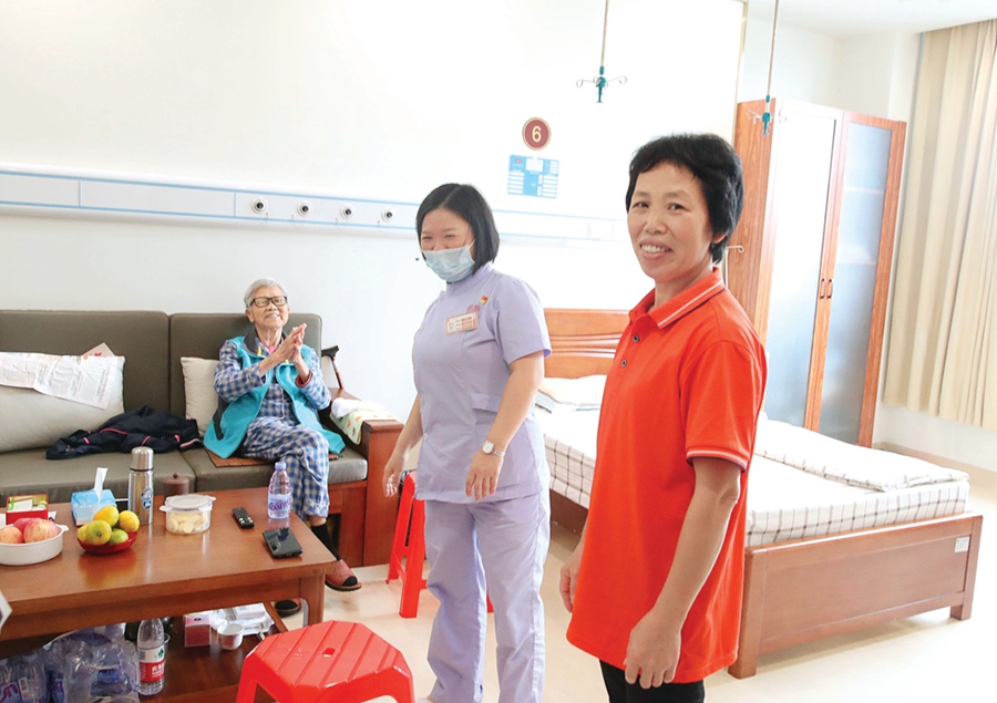 惠州一家養(yǎng)護(hù)院的護(hù)工與老人開心互動(dòng)。惠州日?qǐng)?bào)記者鐘暢新 攝