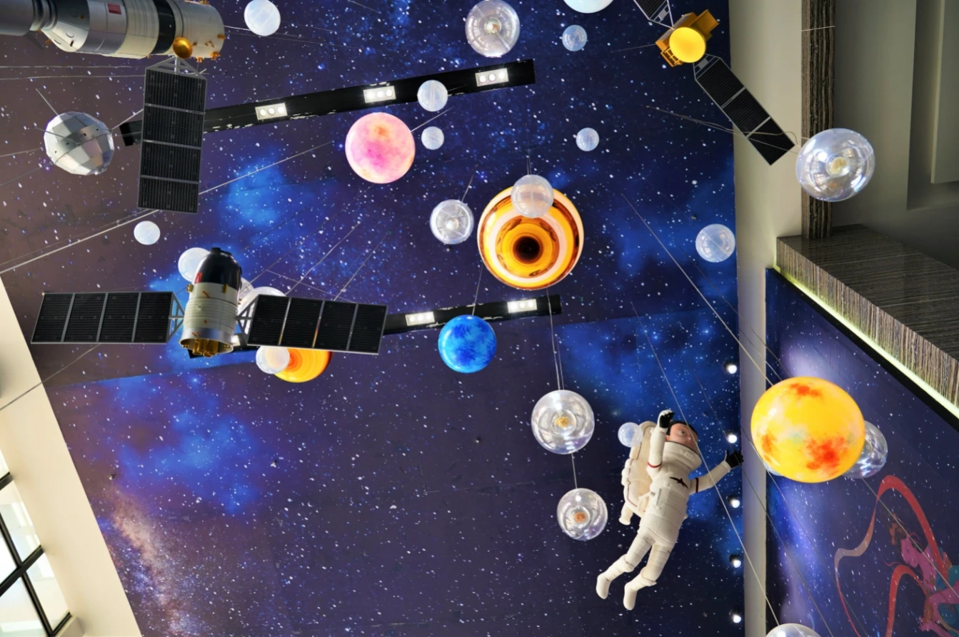 此外,館內(nèi)還設(shè)有“嫦娥五號月球探測器”“祝融號火星探測車”“陸海空天一體作戰(zhàn)”等項(xiàng)目,寓教于樂,讓小孩子在沉浸式體驗(yàn)中了解航天知識。
