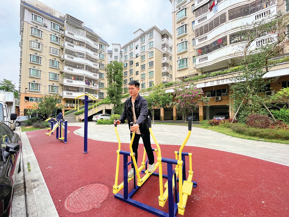 江景新苑小區(qū)改造后增設(shè)健身設(shè)施。