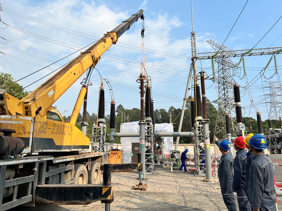 惠州供電局組織人員協(xié)助伯恩光學(xué)搶修GIS開關(guān)。劉宇玲 攝