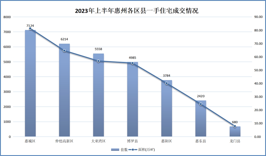 2023年上半年惠州各區(qū)縣一手住宅成交情況。