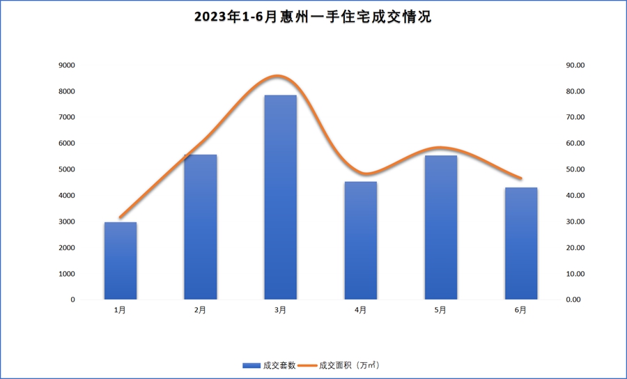 2023年上半年惠州一手住宅月度成交情況。