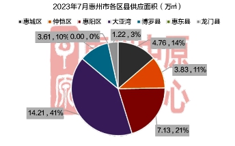 7月惠州各區(qū)縣新房住宅供應占比情況。