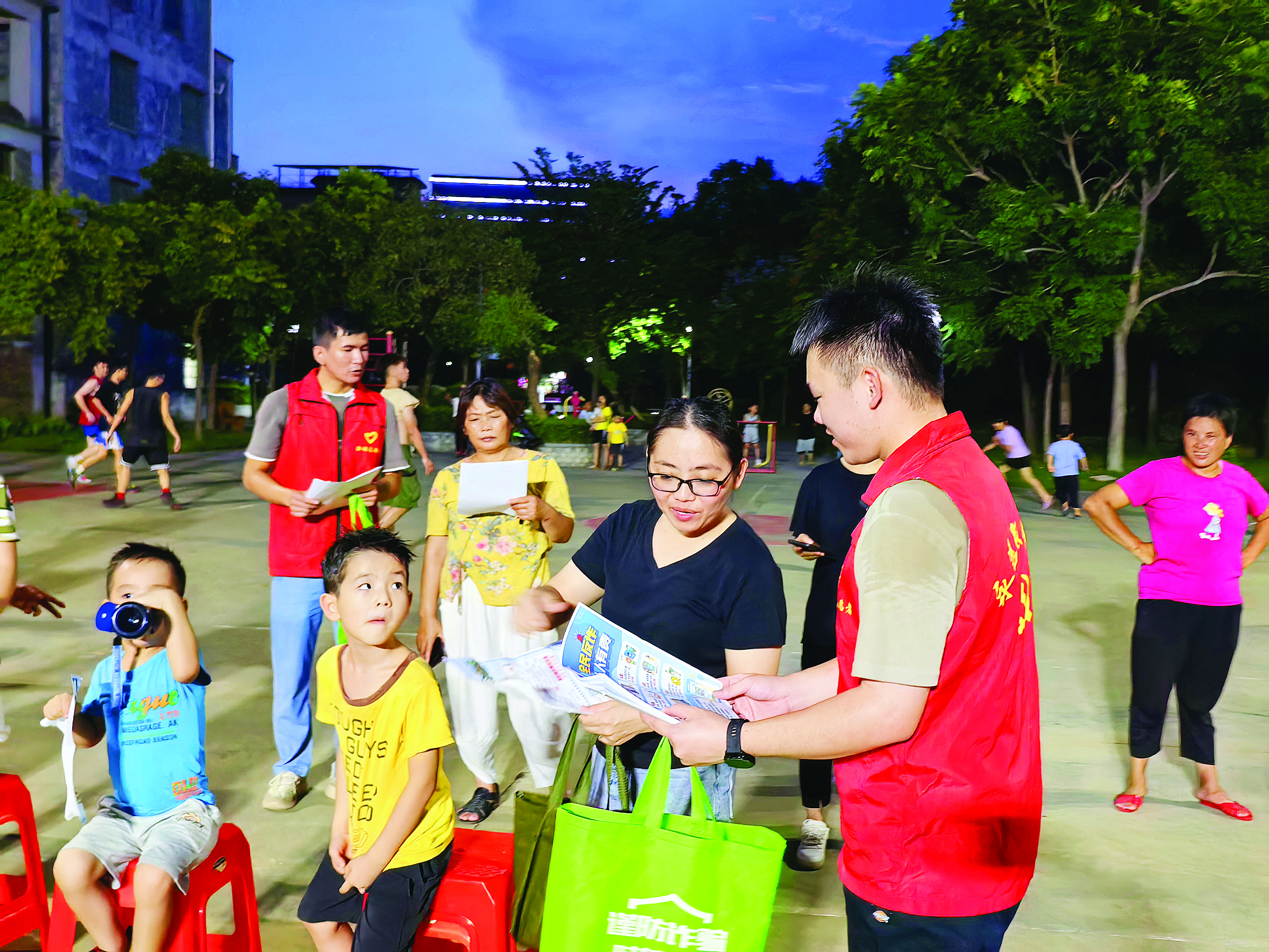志愿者向群眾派發(fā)宣傳單宣傳反詐知識。