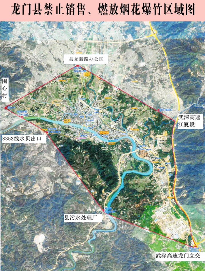 南面由武深高速龍門立交至縣污水處理廠至S353線水貝出口至城西村Y294路口至圍心村