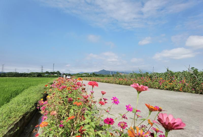 在機耕路兩旁,各色花兒綻放,迎風(fēng)搖曳,不時還有蜜蜂和蝴蝶在花兒周圍追逐,為這幅美麗的自然畫卷增添了絲絲靈氣。