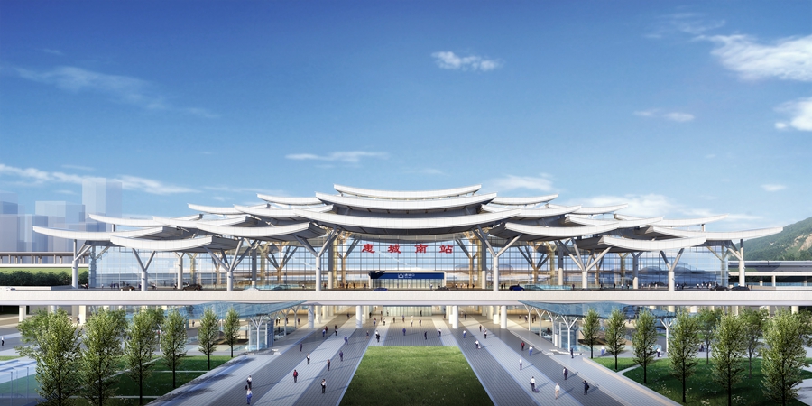 惠城南站是廣汕鐵路沿線新建站點中最大的一個站,也是惠州未來規(guī)劃建設(shè)的另一座高鐵樞紐。惠城南站站房主體兩層,局部四層,建筑面積約3萬平方米。
