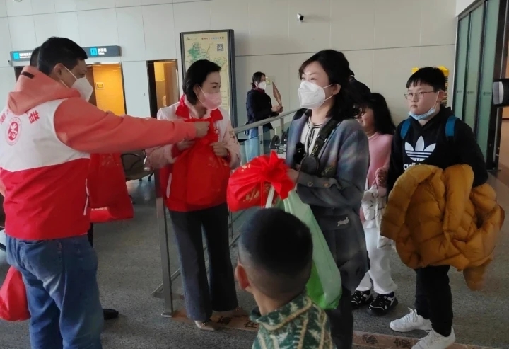 “山海惠州歡迎你!”“這是惠州手信福袋,祝你在惠州旅游愉快!”1月24日,大年初三,下午2點(diǎn)40分許,ZH9711航班穩(wěn)穩(wěn)地降落在惠州機(jī)場。100余名旅客抵達(dá)惠州、魚貫而出。市文廣旅體局、市旅游協(xié)會有關(guān)負(fù)責(zé)人和文明旅游志愿者們,一邊熱情地為游客送上新春祝福,一邊贈送紅彤彤的新年福袋,整個機(jī)場到達(dá)大廳洋溢著歡快的氣氛。