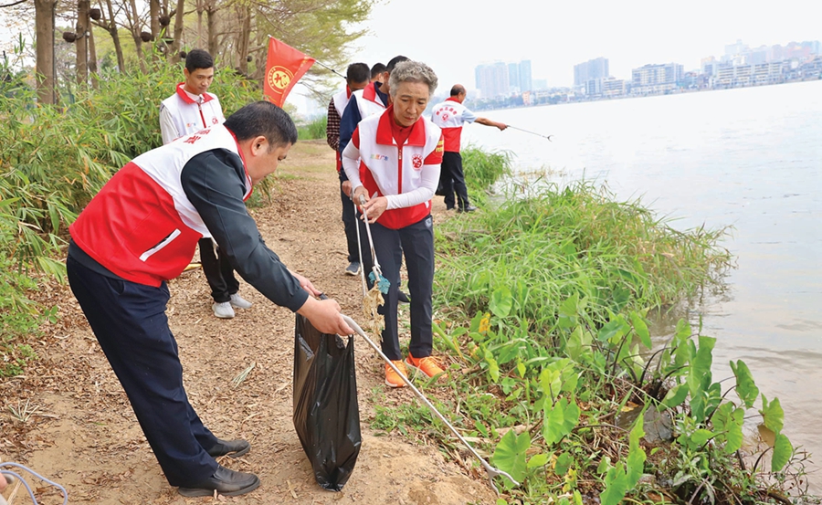 志愿者開展“撿跑”活動。惠州東江圖片社供圖