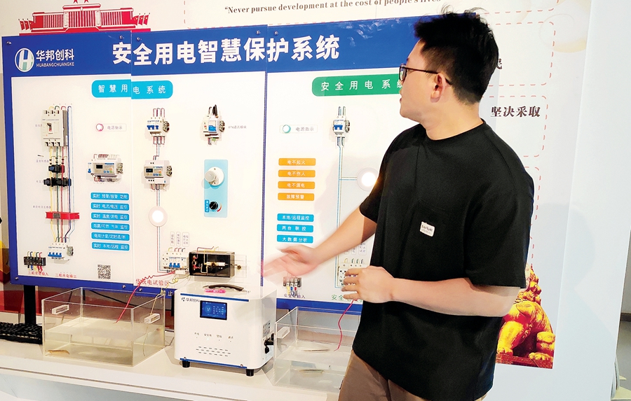 華邦創(chuàng)科首創(chuàng)研發(fā)“安全用電智慧保護(hù)系統(tǒng)”原理展示。惠州日報(bào)記者侯縣軍 攝