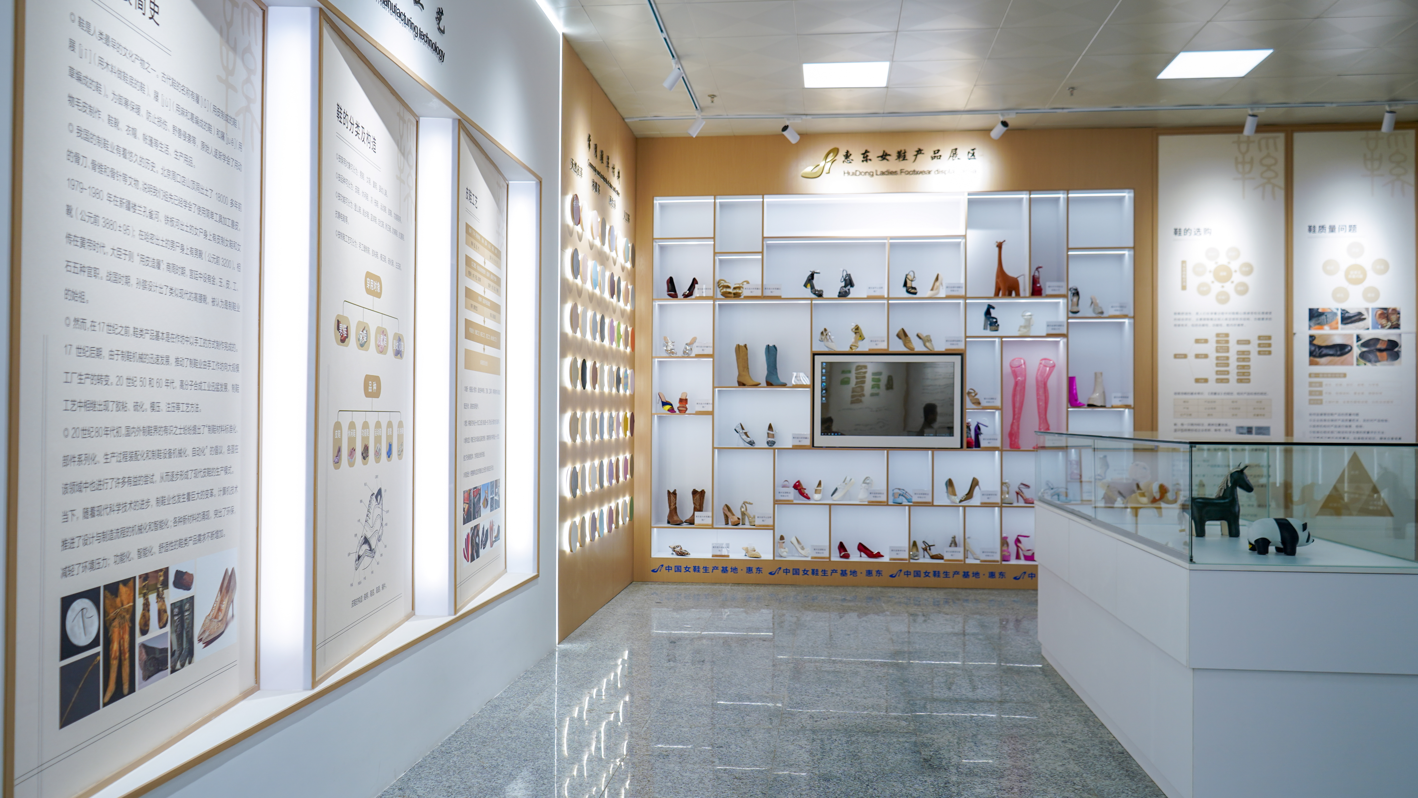 國家鞋檢中心展廳惠東女鞋產(chǎn)品展區(qū)。惠州日報記者陳濤 攝