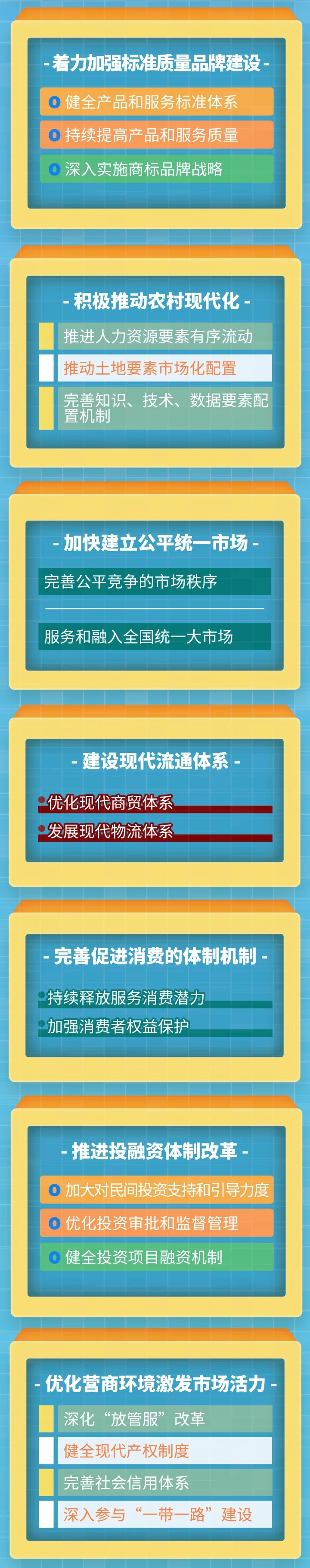 記者看到,《措施清單》從全面促進消費、優(yōu)化投資結(jié)構(gòu)、推動城鄉(xiāng)區(qū)域協(xié)調(diào)發(fā)展、提高供給質(zhì)量、健全現(xiàn)代市場和流通體系、深化改革開放、扎實推動共同富裕、提升安全保障能力等8個方面,提出82項具體措施,并明確了各項措施的責(zé)任單位,進一步挖掘惠州內(nèi)需發(fā)展?jié)摿Γ嘤龎汛笙M市場,激發(fā)消費活力。