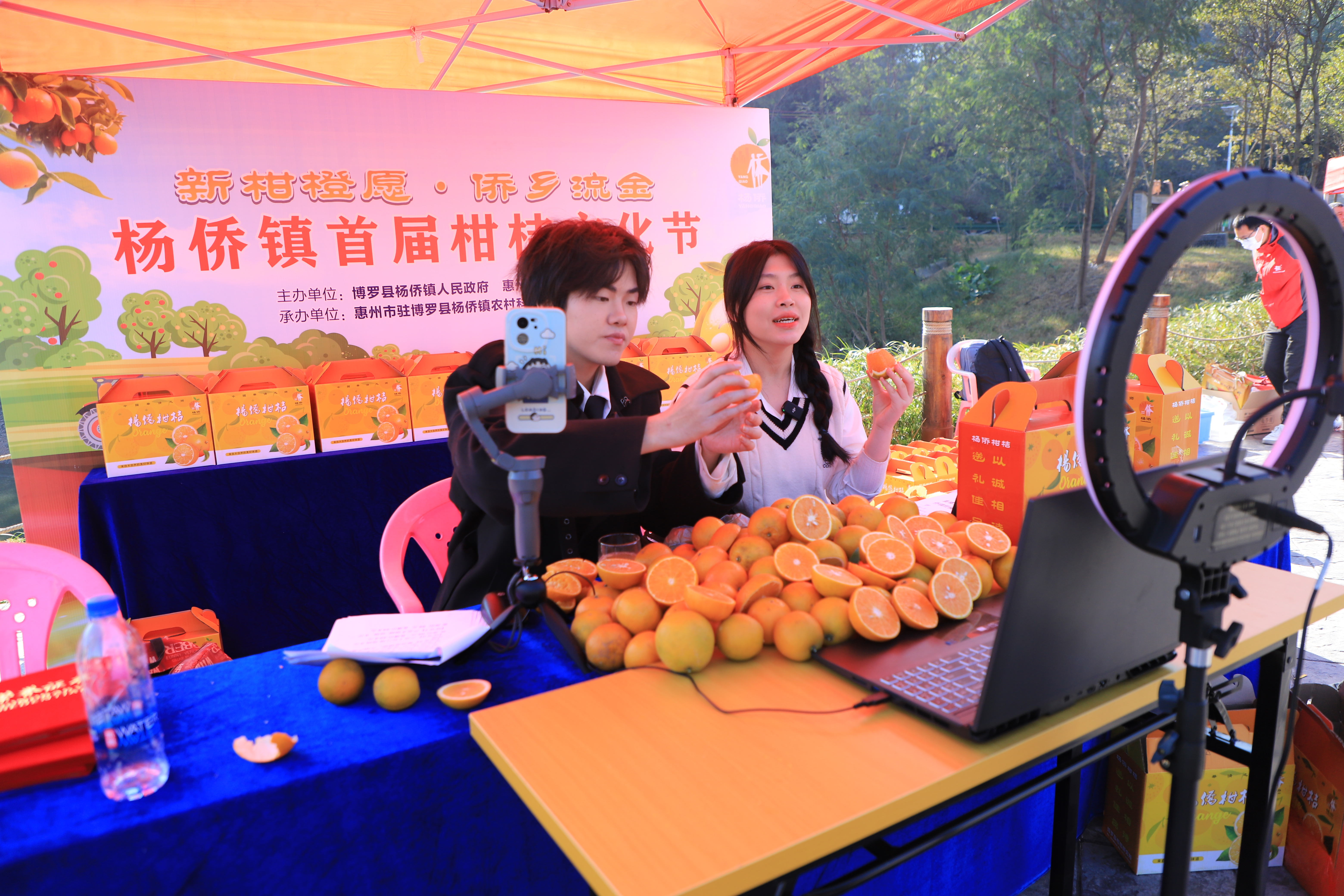 博羅楊僑舉辦首屆柑桔文化節(jié)。這是主播在線上推銷柑桔。