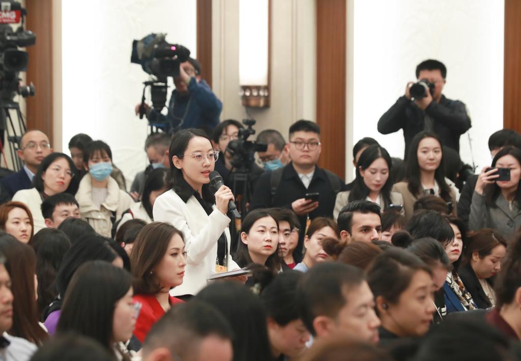 3月4日,十四屆全國(guó)人大二次會(huì)議在北京人民大會(huì)堂舉行新聞發(fā)布會(huì)。大會(huì)發(fā)言人婁勤儉就大會(huì)議程和人大工作相關(guān)問題回答中外記者的提問。這是記者在發(fā)布會(huì)上提問。