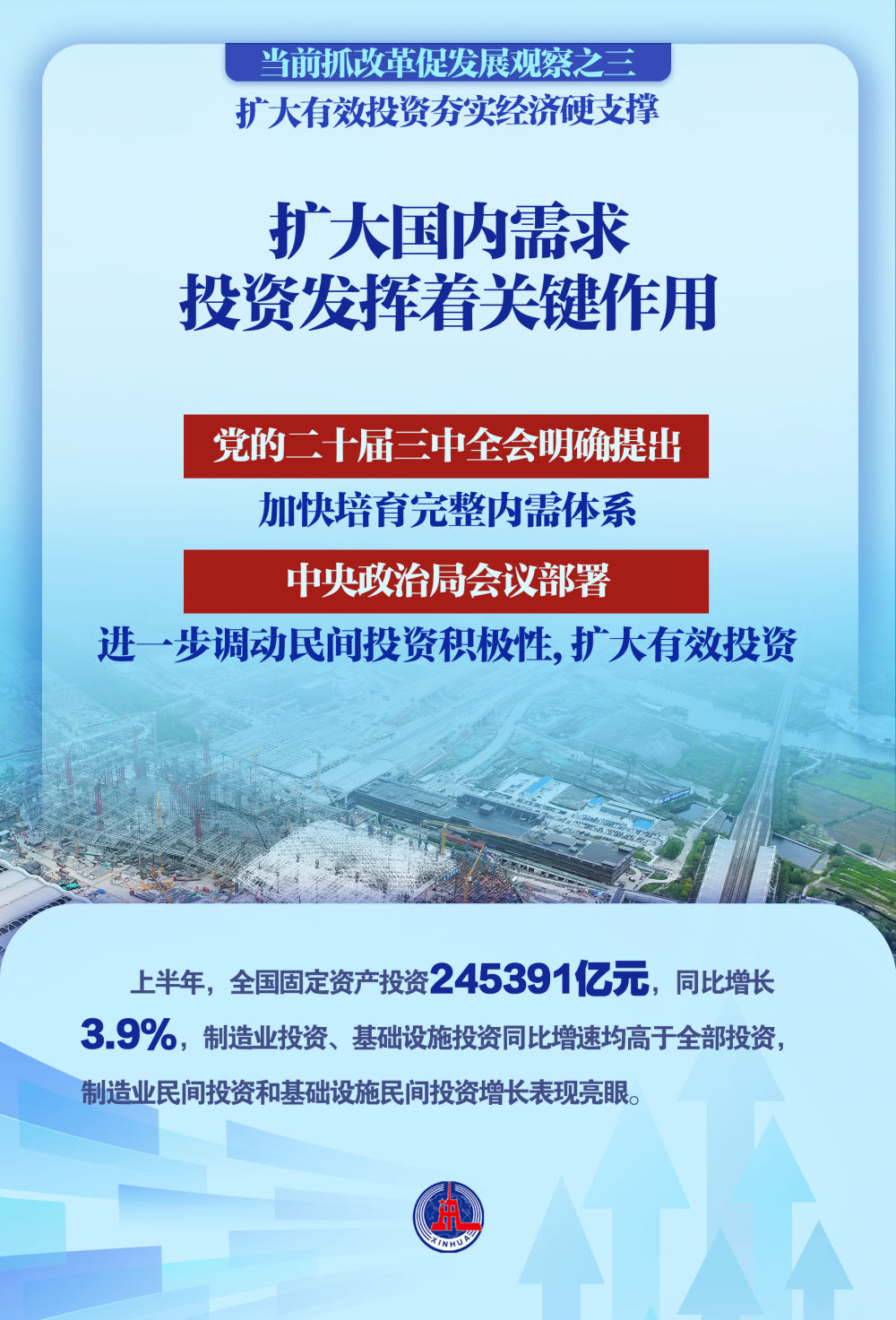 根據(jù)黨的二十屆三中全會作出的相關部署,聚焦關鍵領域擴大有效投資有了更明確發(fā)力方向——