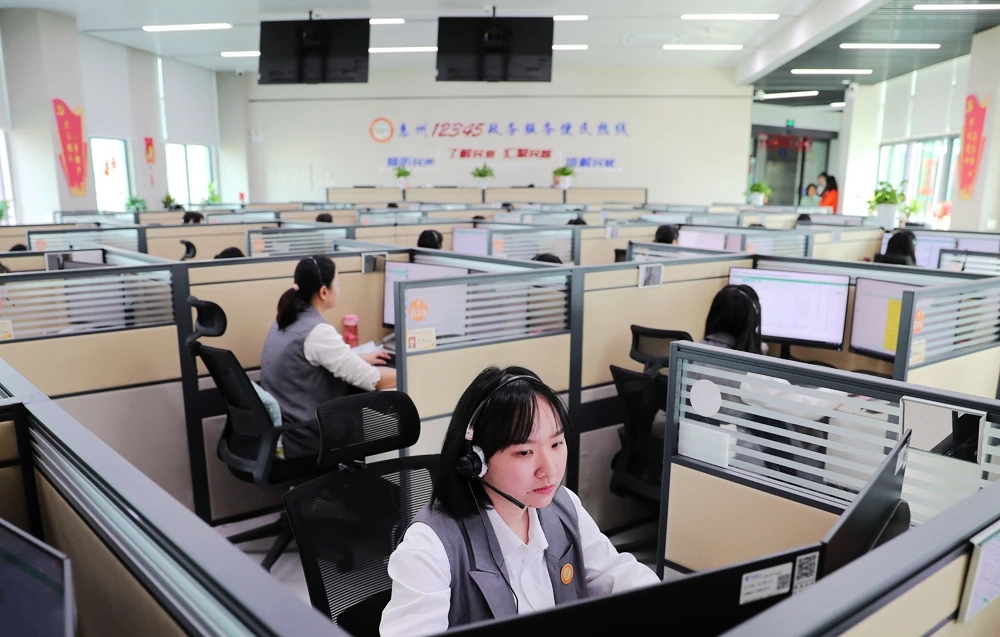 惠州12345熱線話務(wù)員耐心接聽群眾來電。 惠州東江圖片社供圖