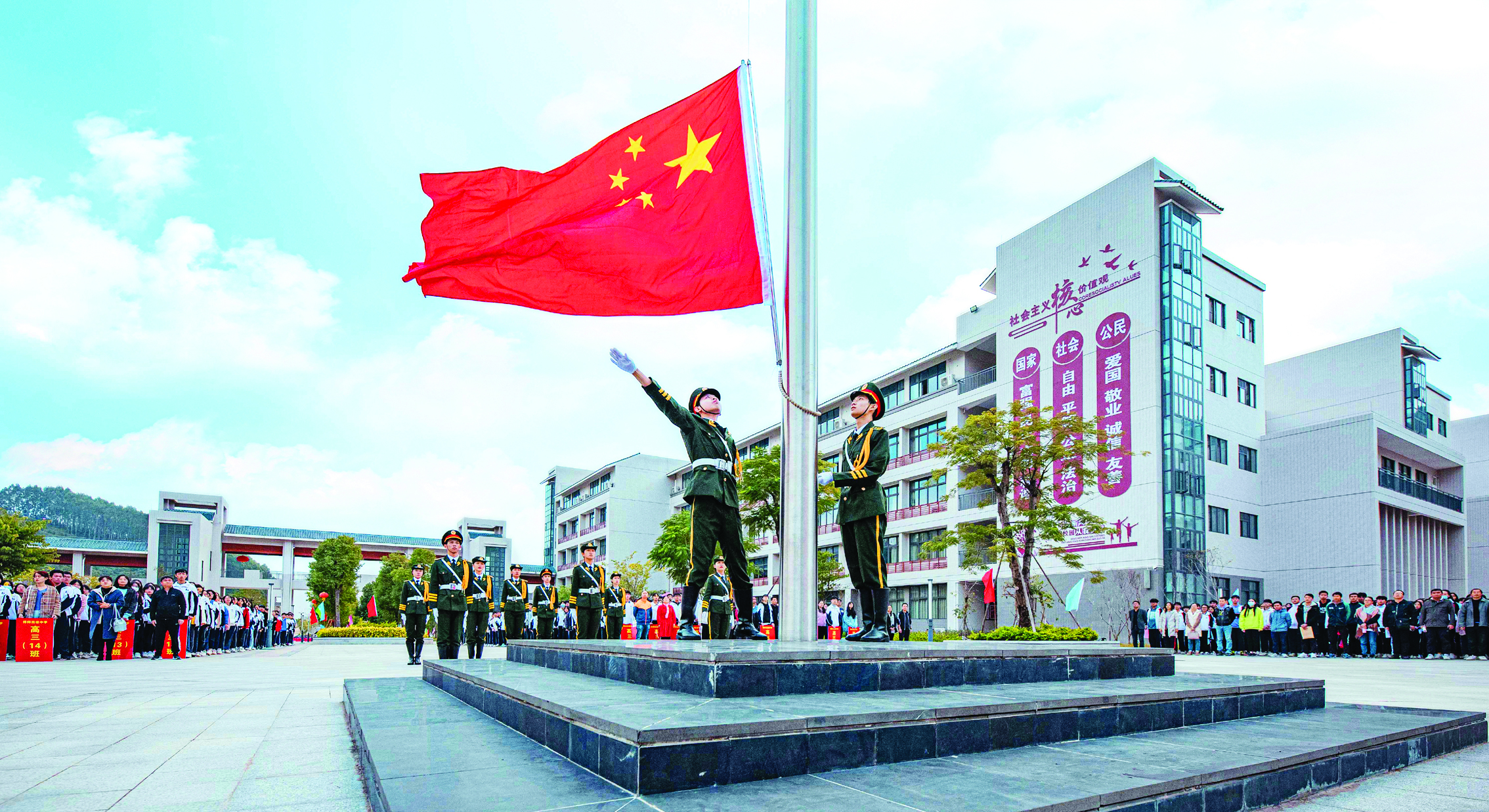 莊嚴(yán)肅穆的升旗儀式暨開學(xué)典禮。