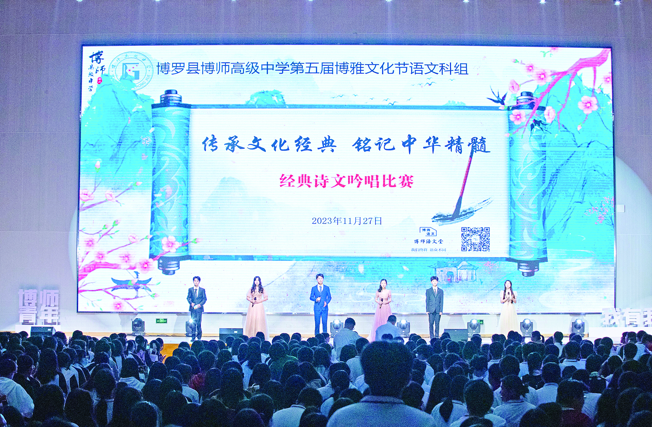 12月的博師高級中學(xué)是五彩斑斕的。每年這個時候,學(xué)生們最期待的“博雅文化節(jié)”拉開帷幕,書香節(jié)、體育節(jié)、音樂節(jié)、科技節(jié)、美術(shù)節(jié)“五節(jié)”并行、“五育”并舉。活動期間,主題講座、知識競賽、詩詞演唱、實(shí)驗(yàn)操作、趣味活動等輪番上陣,同學(xué)們花樣“整活”、釋放自我、展現(xiàn)才華,留下熱情的歌舞、雋永的詩篇,也留下了關(guān)于青春最熱烈的記憶。