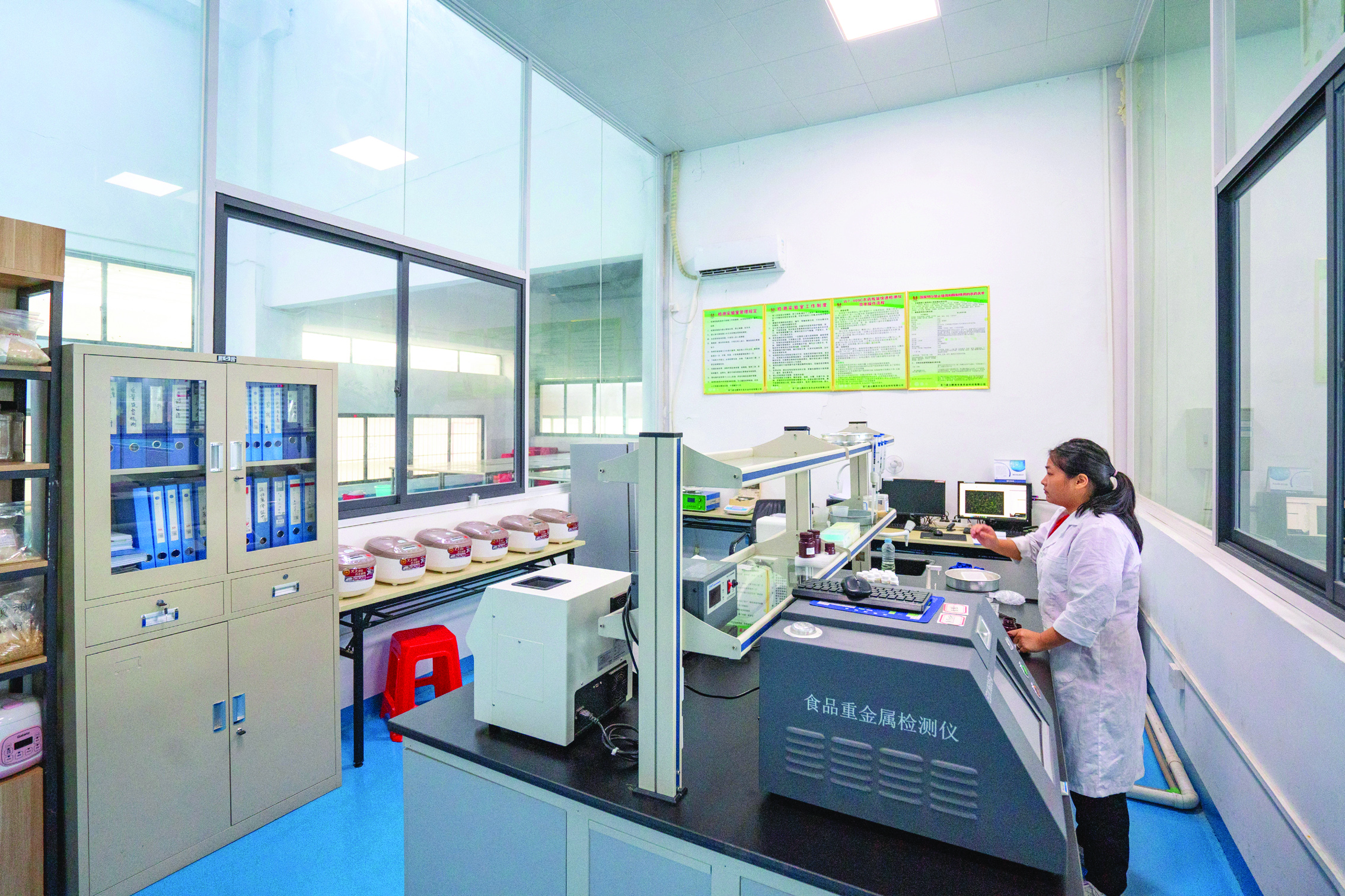 龍門縣現(xiàn)代農(nóng)業(yè)產(chǎn)業(yè)園內(nèi)工作人員正對大米進(jìn)行檢測。