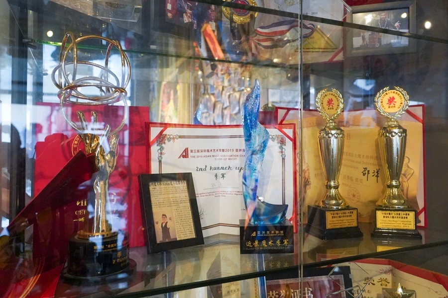 魔術(shù)師邵洋從業(yè)以來(lái)獲得的部分榮譽(yù)。 惠州日?qǐng)?bào)記者陳濤 攝