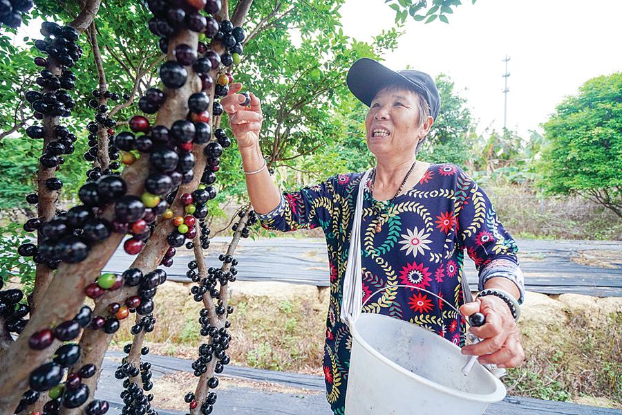 村民采摘嘉寶果。 惠州日?qǐng)?bào)記者湯渝杭 攝