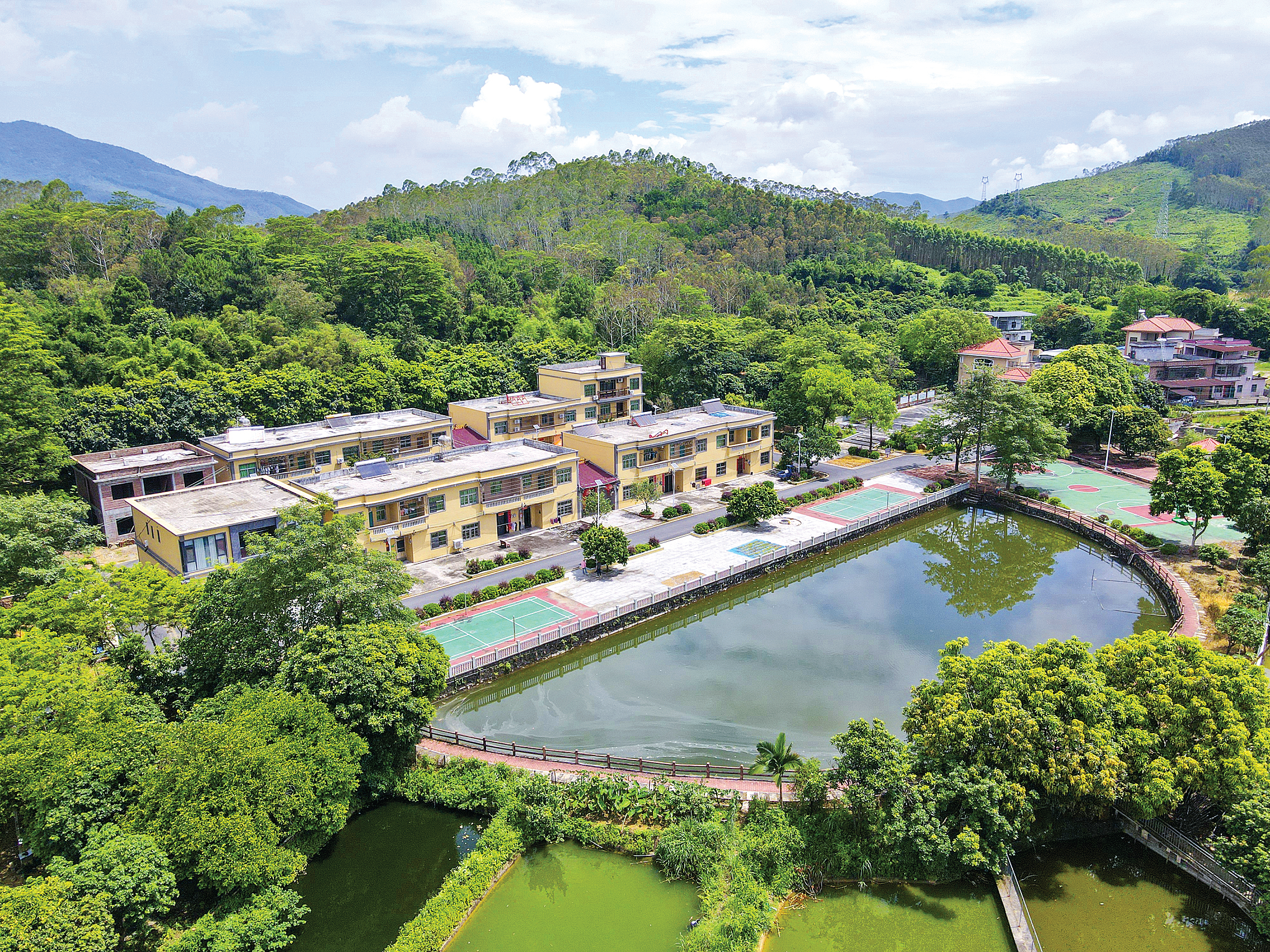 75歲的李康仔是一位退休村干部,一直生活在這里。他說,這兩年村里變化很大,鋪上了瀝青路面,種下了更多綠植,配齊了籃球場、羽毛球場、小廣場,池塘邊也完成了加固,設(shè)有護欄和人行步道,越來越美。早上和傍晚,村民悠閑地散步、納涼,“生活在這里很幸福,休閑配套跟城里有得比。”
