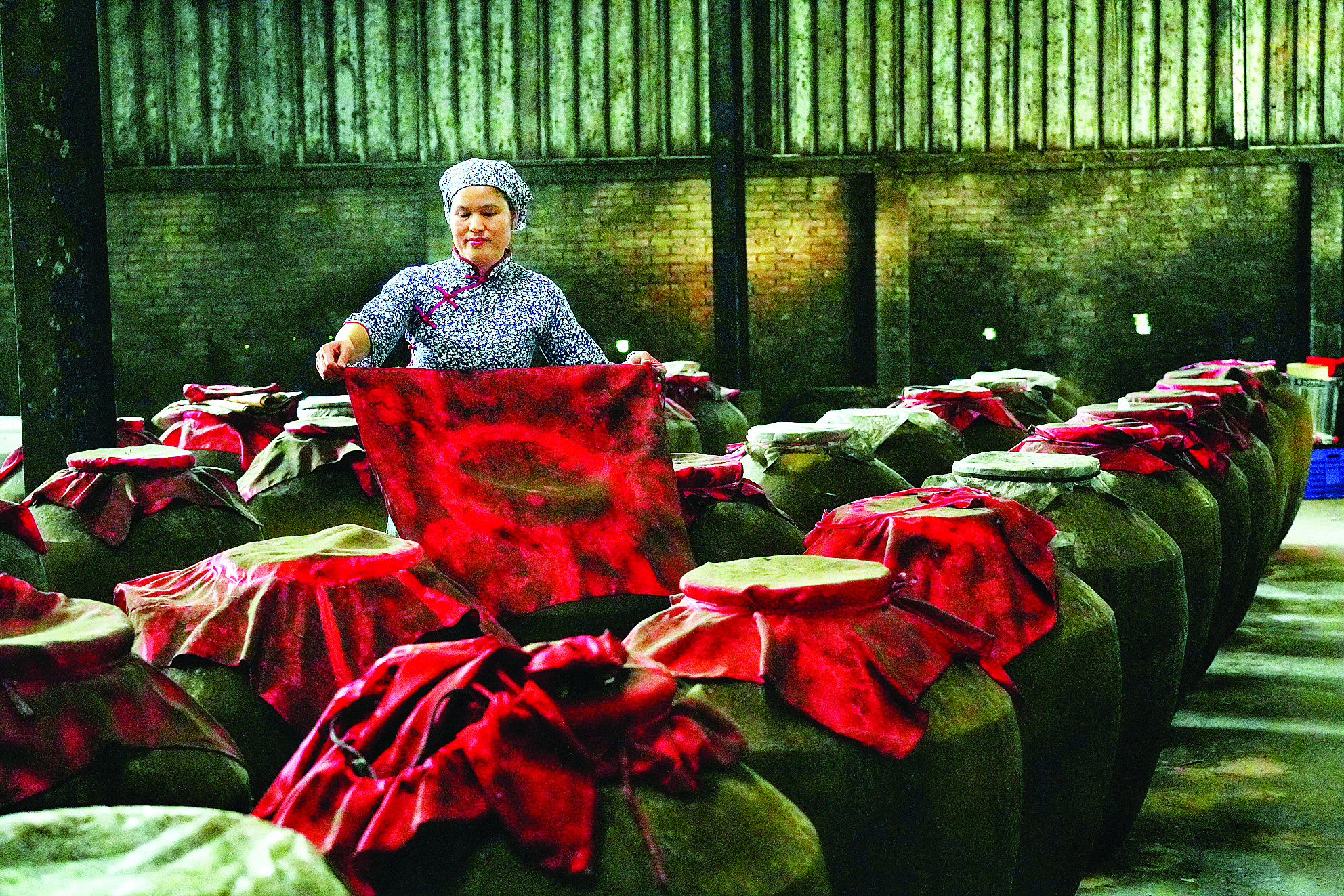毛偉英正在封存酒。