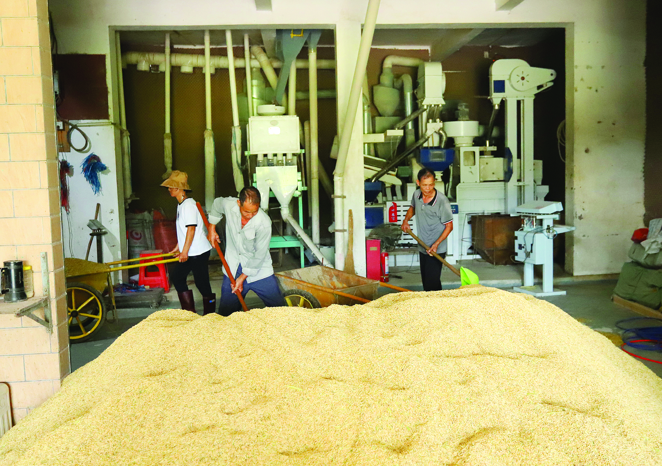 富硒水稻即將裝車進(jìn)行烘干。惠州日報(bào)記者鐘暢新 攝