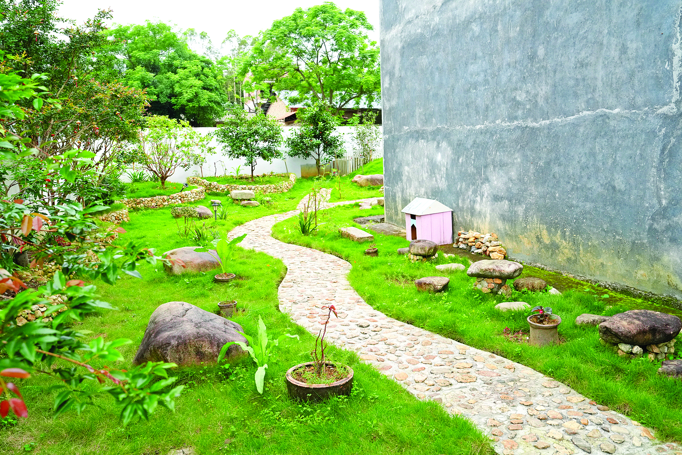 在龍?zhí)镦?zhèn)另一戶村民鐘志星家里,庭院里栽有各類花草,院子里的花壇、小徑、涼亭裝飾物等都用天然鵝卵石人工砌成,與花草灌木相映成趣,甚是好看。“我喜歡花草園藝,平時(shí)對園林設(shè)計(jì)也有所了解。前兩年長期待在家,有時(shí)間打理一下院子,我也是樂在其中。”鐘志星告訴記者,庭院內(nèi)的每一處都是他一點(diǎn)一滴堆砌起來的。不僅是自家院子,鐘志星家門口的空地也在他和家人精心打造下,變身成為村里“口袋公園”,為大家提供了賞綠、享綠的好去處。
