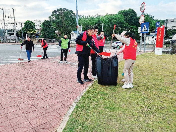 大家在新聯(lián)村開展清潔行動(dòng)。惠州日?qǐng)?bào)記者洪鵲兒 特約通訊員謝長(zhǎng)波 通訊員羅燕娜 攝
