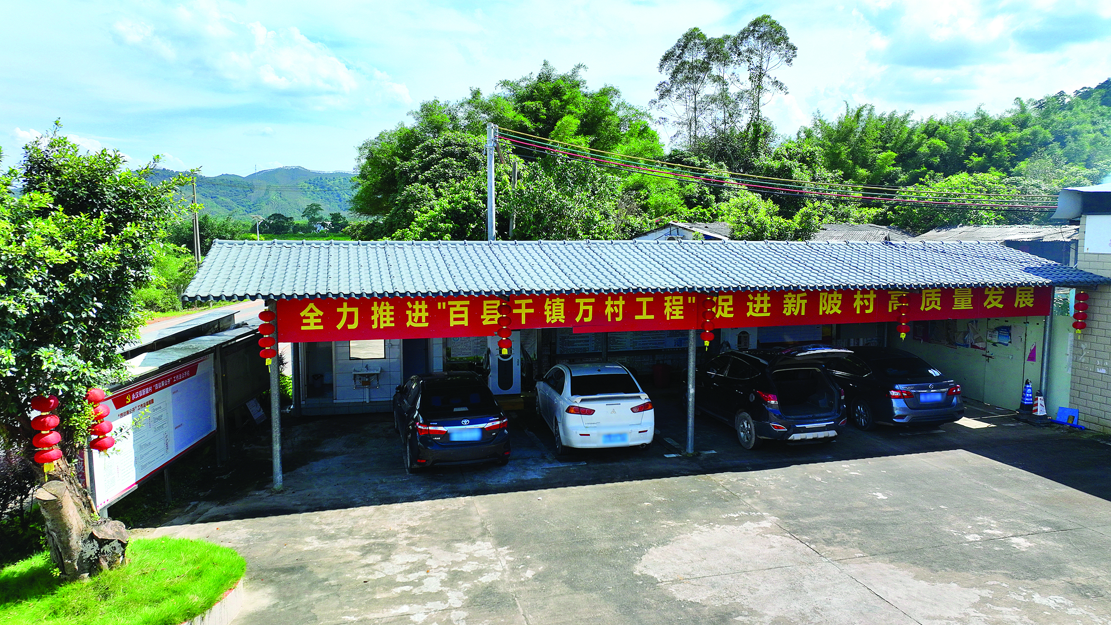 駐永漢鎮(zhèn)幫鎮(zhèn)扶村工作隊(duì)幫助新陂村建設(shè)的新能源充電站。惠州日?qǐng)?bào)記者鐘暢新 攝